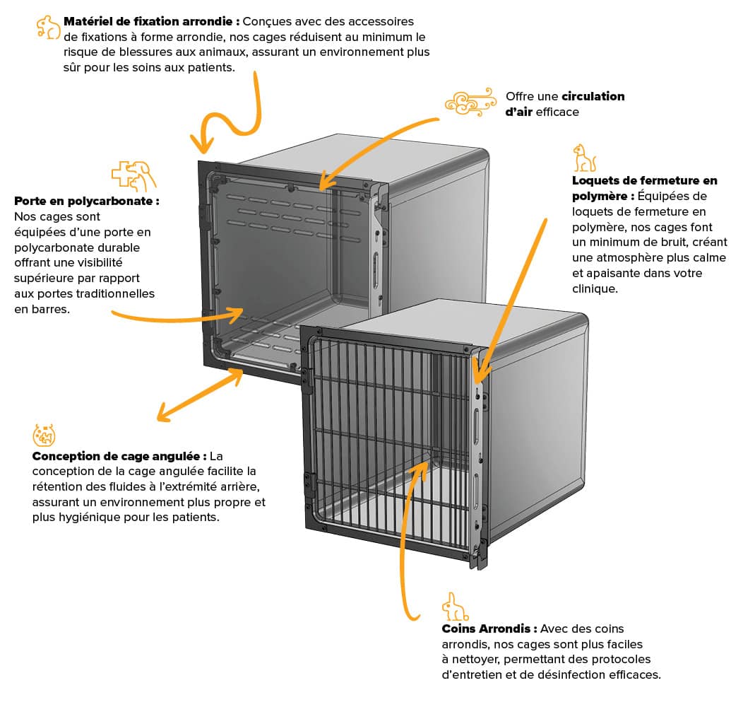 - L’espace qui sépare la porte du boîtier est réduit au minimum, ce qui empêche l’animal de passer ses pattes et de se blesser.