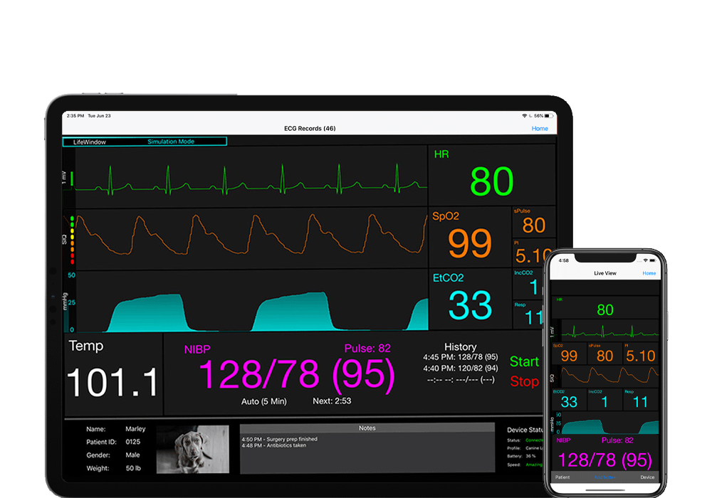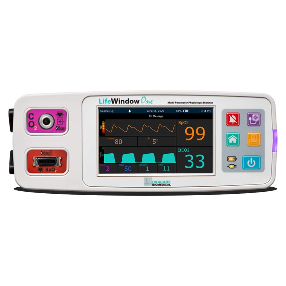 Moniteur avec NIPB et ETHERNET. Le LifeWindow One de Digicare est un moniteur physiologique adapté aux vétérinaires. Il est portable avec des caractéristiques et des avantages distinctifs. Conçu avec des modules vétérinaires de première qualité incluant une interface utilisateur à écran tactile facile à utiliser. Ce moniteur est dans une classe qui lui est propre, compact et pesant seulement 3 Lbs. Fabriqué avec la commodité à l’esprit, le LifeWindow One peut facilement être monté sur un support de roulement ou un pôle IV. La combinaison parfaite de taille et de fonctionnalité pour compléter n’importe quel arrangement de clinique.