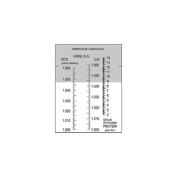 Le réfractomètre Rhino Vet 360 indique la gravité spécifique et la protéine sérique dans le plasma, le sérum et le fluide périotonal avec une haute précision.