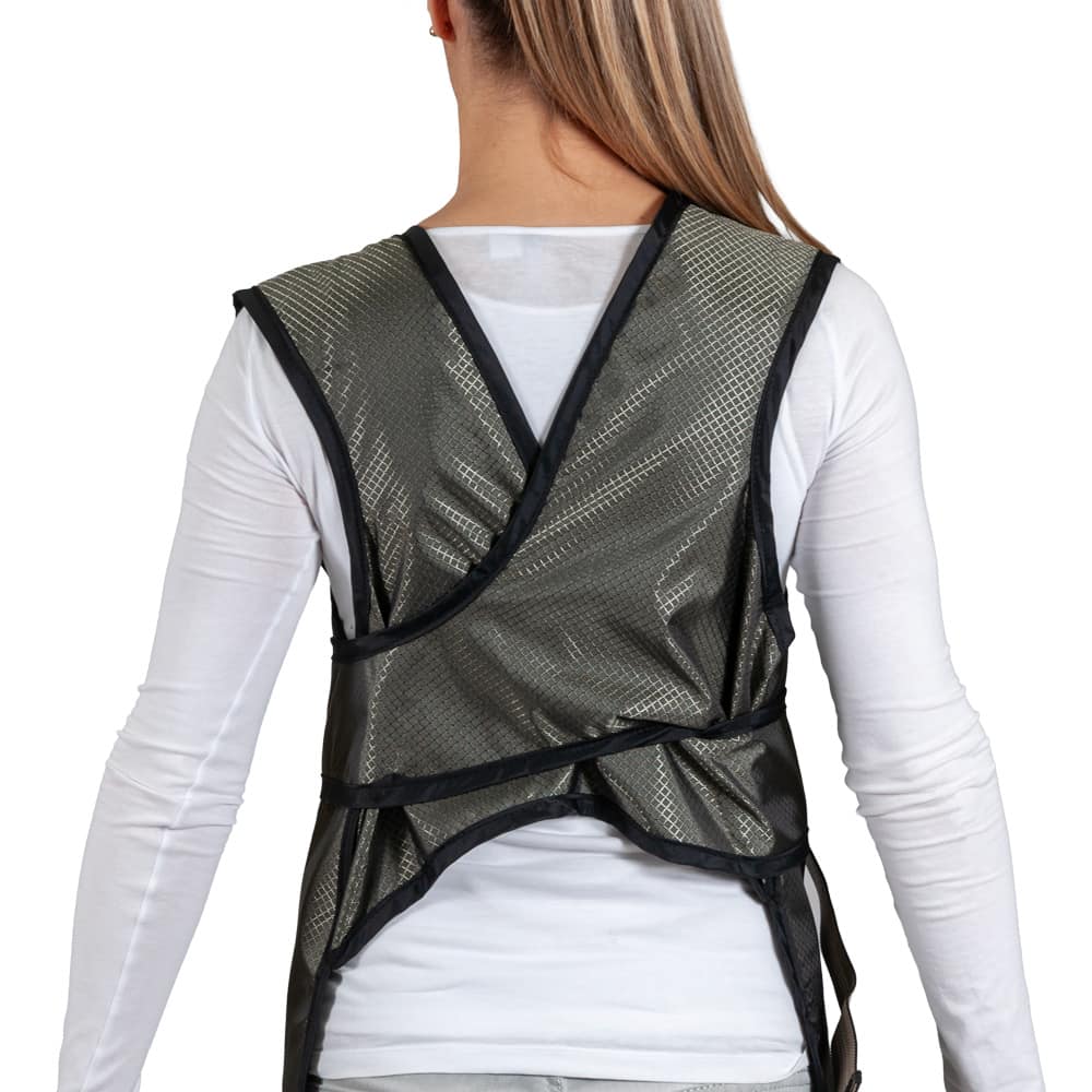 • Le tablier offre une protection totale équivalente à 0.5mm de plomb pour 150 KVP.