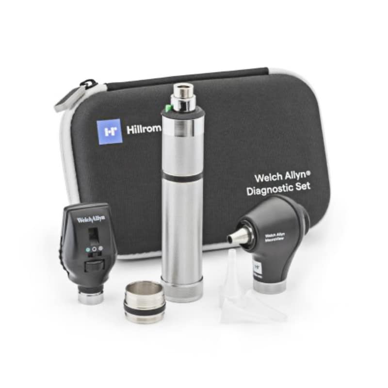 Welch Allyn, ensemble de diagnostic 3,5V avec ophtalmoscope Coaxial au DEL , otoscope MacroView au DEL, manche rechargeable au nickel-cadmium et étui rigide.