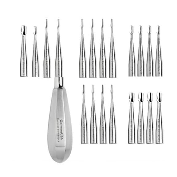 Luxating Winged Elevator Kit Packs are used in multiple small animal tooth extraction procedures. The tips and handles of Luxating Winged Elevators are robust than old luxating instruments and can easily cut the ligament that facilitates the users to perform tooth extraction procedures by using this amazing dental instrument. These surgical instruments are made of supreme quality medical-grade German metals that keep them lightweight, rust-free, and durable. After sterilization, these instruments can be reused to perform a variety of surgical procedures. The Luxating Winged Elevator Kit Packs are available in a variety of options. They are perfect for those who want to enhance their operating room skills by using extremely good and affordable surgical instruments.